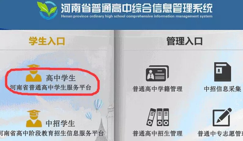 一、登录河南省普通高中综合信息管理系统(网址为www.hagaozhong.com) ,点击“河南省高中学生服务平台”
