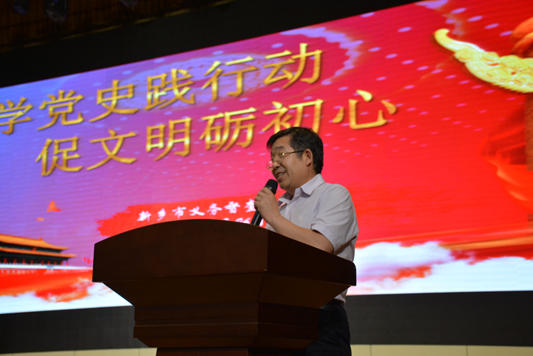 5月26日,在河南师大附中双语国际学校剧场举行了以“学党史、明初心,担当时代责任”为主题的“四史”教育学习报告会,主讲人为新乡市疾控中心、河南省“身边好人”程栋,中国好人孔祥卫、新乡市道德模范张红香、新乡好人樊光辉、新乡好人王玉芳、我校党总支书记李现山、小学部校长王爱琴、学部副校长郭学明出席了会议,全体党员及初中部全体师生参加了报告会。会议由李现山书记主持。